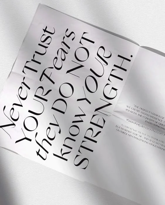 Afin d’apporter authenticité à votre image de marque, j’utilise très fréquemment une famille typographique, je jète mon dévolue sur une police d’écriture que je juge adéquate pour venir la décomposer par la suite. En partant d’une base solide, je viens démembrer le caractère en y ajoutant des traits fins, plus de rondeur, des séparations, des éléments graphiques… tout en gardant une stabilité, une lisibilité et une intemporalité.